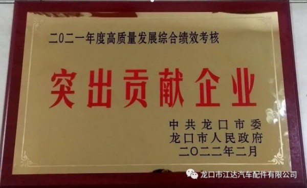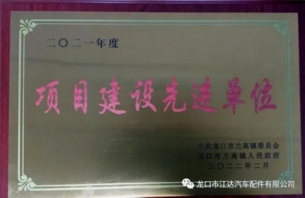 龍口江達(dá)汽車(chē)配件有限公司 被授予項(xiàng)目建設(shè)先進(jìn)單位