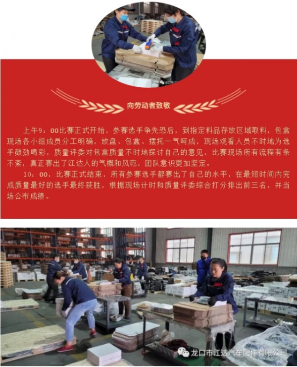 五一節(jié)前夕,在江達(dá)公司舉行了一場(chǎng)別具生面的勞動(dòng)競(jìng)賽活動(dòng)——包盒比賽,這是江達(dá)公司為迎接即將到來(lái)的五一勞動(dòng)節(jié)所舉辦的特別活動(dòng)。
