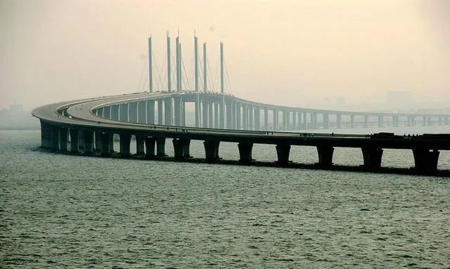不知不覺(jué)大巴車駛?cè)氘?dāng)時(shí)創(chuàng)下世界之最的跨海大橋——膠州灣跨海大橋,聽(tīng)車上導(dǎo)游講:大橋于2006年12月26日開(kāi)始建設(shè),歷時(shí)4年完工,于2011年6月30日全線通車,是我國(guó)自行設(shè)計(jì)、施工、建造的特大跨海大橋。2011年9月,被美國(guó)《福布斯》雜志評(píng)為“全球最棒橋梁”。