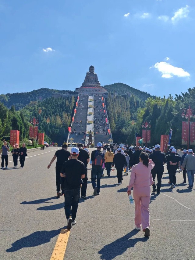 下午江達(dá)員工又紛紛乘坐大巴車趕往下一個景點---南山AAAAA級景區(qū),煙臺市南山景區(qū)分為宗教歷史文化園、主題公園-歡樂峽谷和東海旅游度假區(qū)三大部分。主要景點南山禪寺、香水庵、南山道院、靈源觀等均為晉、唐遺跡,世界最大的錫青銅坐佛南山大佛(像高38.66米,重380噸)和國內(nèi)最大的室內(nèi)玉佛南山藥師玉佛(像高13.66米,重660噸)成為景區(qū)兩大亮點。