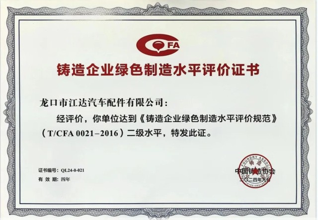08? 江達(dá)公司被中國(guó)鑄造協(xié)會(huì)評(píng)定為“中國(guó)綠色鑄造企業(yè)” ?
