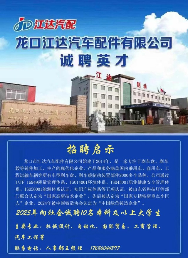 2024年9月,根據(jù)山東省大中小企業(yè)融通創(chuàng)新聯(lián)合會(huì)評(píng)審結(jié)果,龍口市江達(dá)汽車配件有限公司被認(rèn)定為“山東制造”品牌。